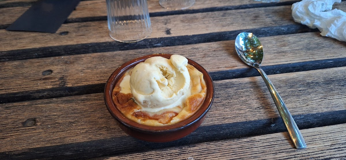 Excellent staff and service. We had the cod and the pork, both delicious, followed by cheesecake. Vega beer was good, as was the wine. There is a huge choice of ice cream! Parking is available in the Abbey carpark, which is free.